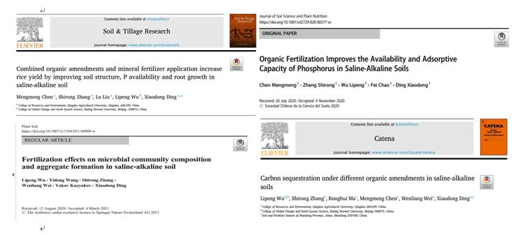 为解决这个难题,青岛农业大学资源与环境学院崔德杰教授障碍土壤修复与绿色开发利用创新团队的丁效东教授课题组长期致力于黄河三角洲滨海盐碱(中低产田)土壤改良与地力提升研究。继2020年5月后,近日该团队再次在黄河三角洲滨海盐碱地(中低产田)土壤改良与地力提升机制方面取得新进展,相关研究成果分别发表在Soil & Tillage Research(中科院1区TOP期刊,IF:4.601),Catena(中科院1区TOP期刊, IF:4.333),Plant and Soil(中科院2区TOP期刊,IF:3.299),Journal of Soil Science and Plant Nutrition(中科院3区期刊,IF:2.156)。2020级研究生陈猛猛为Soil & Tillage Research和Journal of Soil Science and Plant Nutrition的第一作者,该校2016级研究生、现为北京师范大学博士研究生吴立鹏