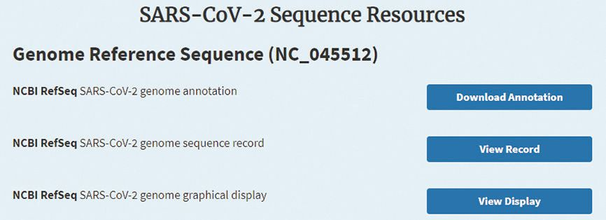 另一个权威的新冠病毒序列数据库,NIH下属的NCBI新冠病毒资源库也同样非常清楚的标注,参照序列采用的是中国发表的NC_045512/HU-1序列。(下图)