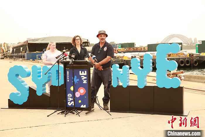 12月29日,悉尼市政府在格里布岛举行新闻发布会,介绍悉尼跨年庆典烟花表演准备情况。逾10万支烟花已装船就绪,标志着悉尼跨年庆典烟花表演进入倒计时。图为跨年庆典烟花表演相关人员介绍情况。中新社 记者 陶社兰 摄