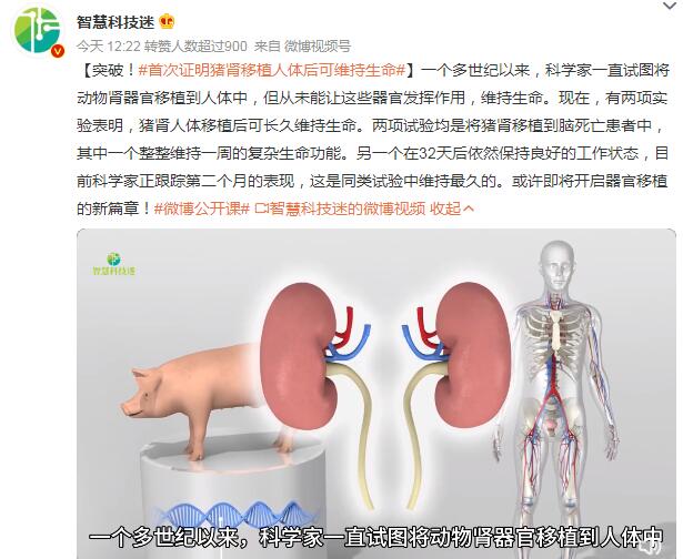 【突破!首次证明猪肾移植人体后可维持生命】一个多世纪以来,科学家一直试图将动物肾器官移植到人体中,但从未能让这些器官发挥作用,维持生命。现在,有两项实验表明,猪肾人体移植后可长久维持生命。两项试验均是将猪肾移植到脑死亡患者中,其中一个整整维持一周的复杂生命功能。另一个在32天后依然保持良好的工作状态,目前科学家正跟踪第二个月的表现,这是同类试验中维持最久的。或许即将开启器官移植的新篇章!