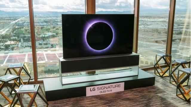 无独有偶,韩国的LG电子也在CES上推出了一款可卷曲的电视—LG Signature RX。