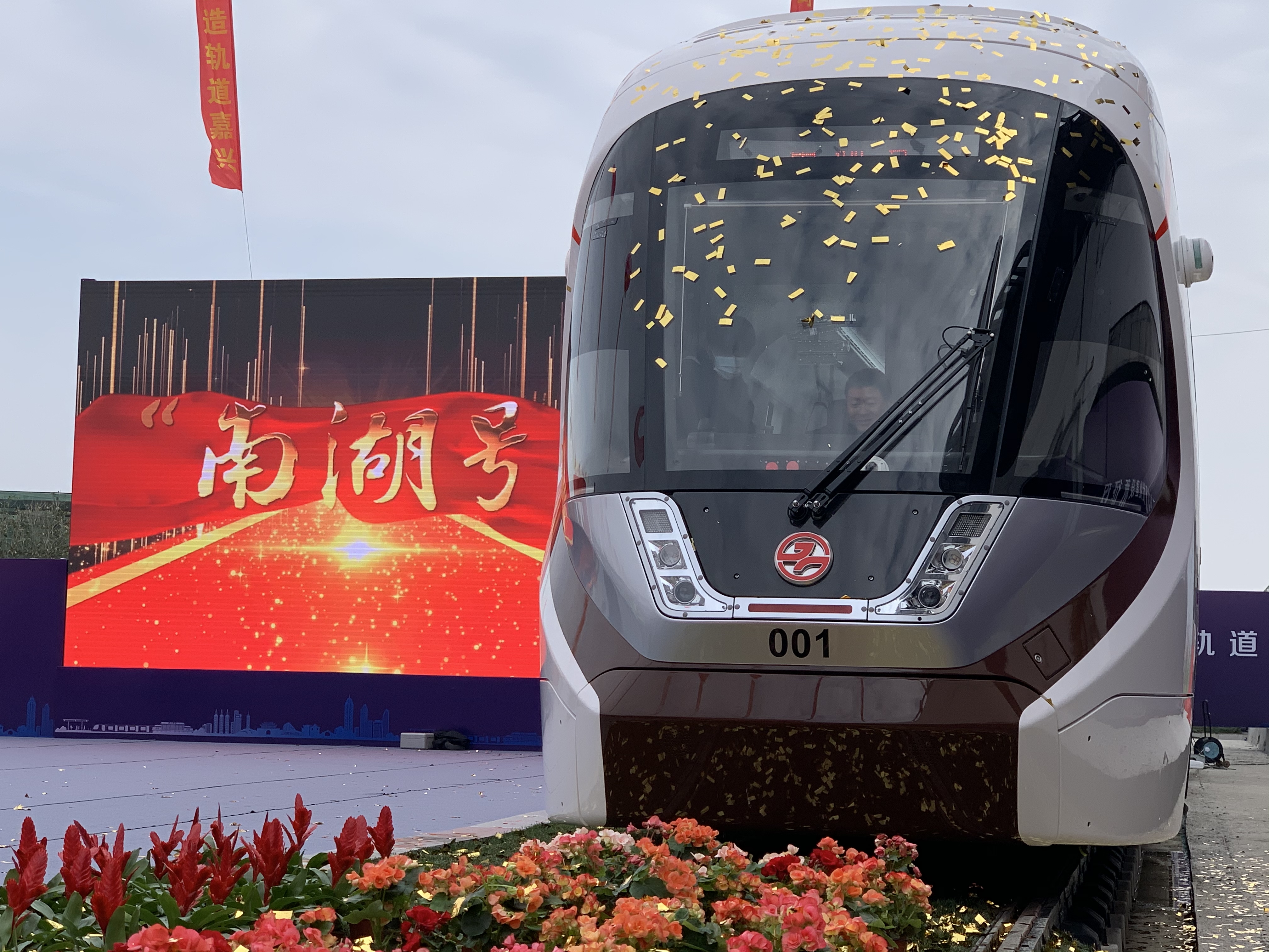 2月3日上午,由中车长春轨道客车股份有限公司(中车长客)研制的新型储能式100%低地板有轨电车在嘉兴市正式亮相。在项目首列车接车暨命名仪式上,嘉兴市委书记张兵宣布,嘉兴市有轨电车正式命名为“南湖号”。
