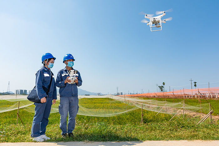 在三亚市崖州区南繁试验基地,南方电网海南三亚供电局党员服务队用无人机等设备进行线路检查,开展隐患排查,确保安全用电