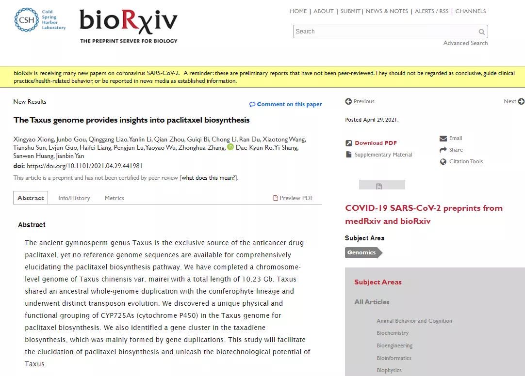据中国农业科学院最新消息,该院农业基因组研究所和湖南农业大学等机构,通过对南方红豆杉(Taxuschinensis var. mairei)全基因组测序,首次组装成功了染色体级别的高质量参考基因组,揭示了抗癌药物紫杉醇生物合成的遗传基础。相关研究论文最新在线发表于预印平台bioRxiv。