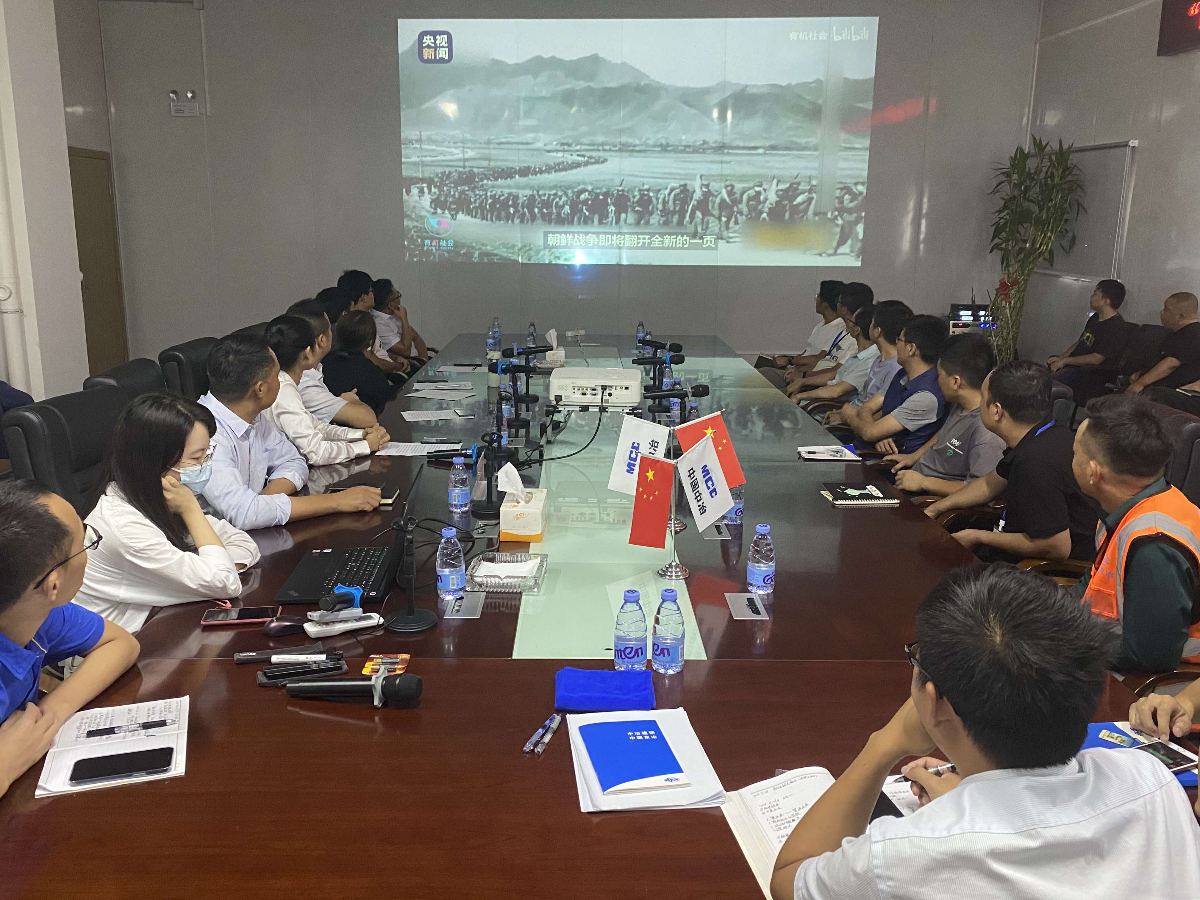 在学党史,悟思想环节,与会人员共同观看抗美援朝党史纪录片。中冶建研院深圳公司总经理助理汪家靓结合抗美援朝精神以及中冶建研院深圳公司发展史,讲述党课,与会党员表示将始终牢记初心使命,不断发扬斗争精神,勇于战胜一切艰难险阻,脚踏实地做好项目建设。会上,项目相关负责人围绕如何推进品质工程建设,分享了项目质量、安全、环保、工程进展等方面的做法,介绍了该项目精细化、技术化、安全化的具体实践。