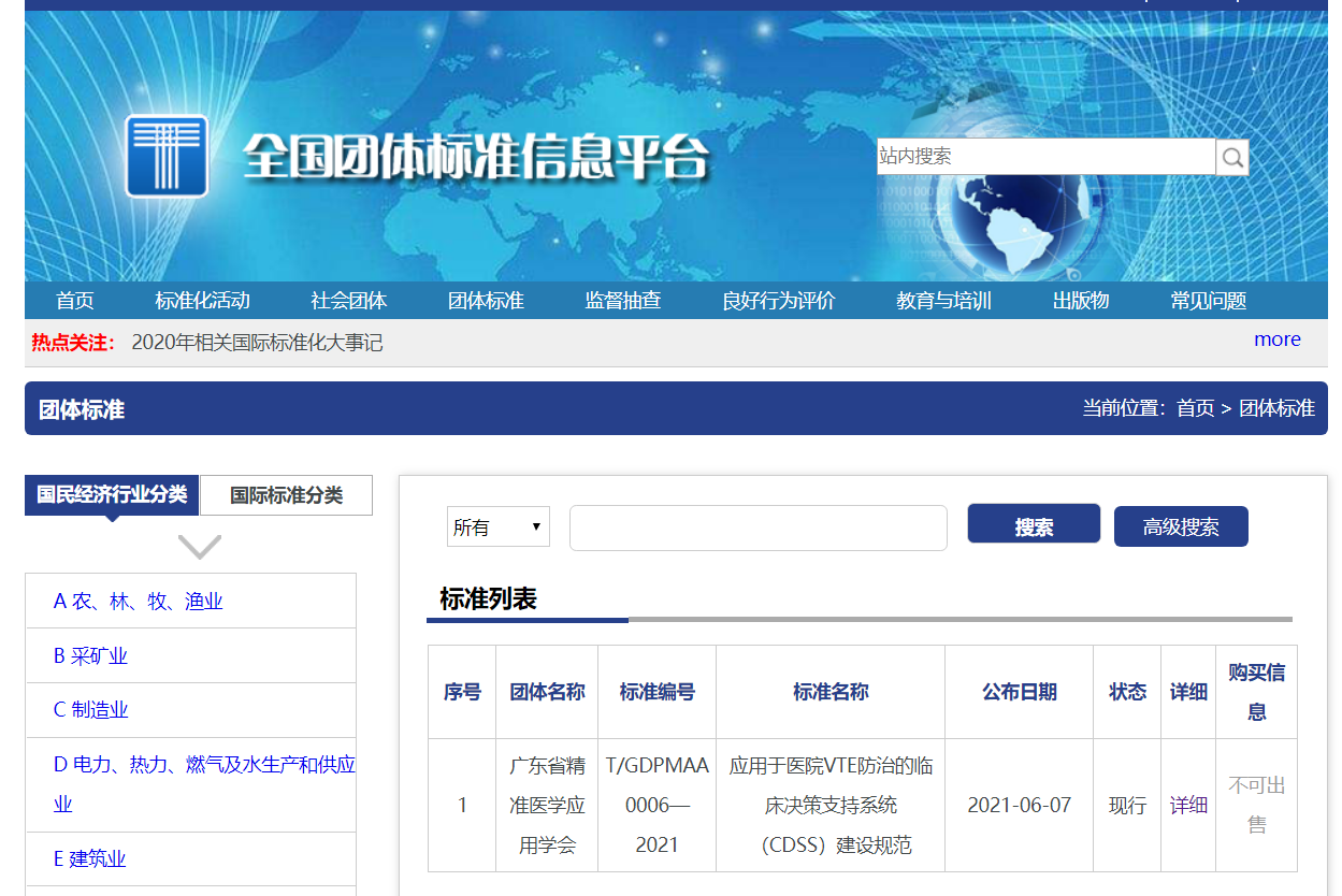 日前,由南方医科大学南方医院主编,近二十家医疗机构参与编写的《应用于医院VTE防治的临床决策支持系统(CDSS)建设规范》(以下简称《建设规范》)正式在全国团体标准信息平台公布,填补了国内对VTE(静脉血栓栓塞症)管理信息化平台建设规范与要求的空白,将促进各医院规范VTE防治系统建设,助力院内VTE防治的规范化和标准化管理。