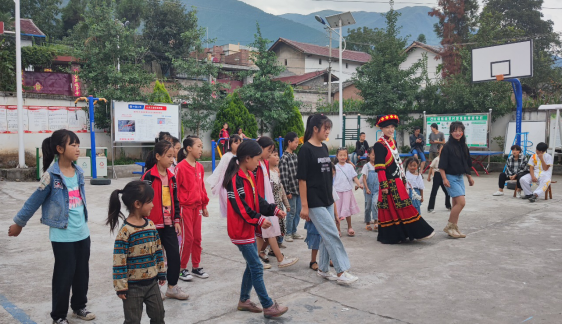 为了感染更多孩子热情参与,“朵儿计划”创始人任爽来到凉山前,就自学了彝族特色舞蹈《阿诗且》。当“朵儿”姐姐配上民族服饰欢快跳起来时,迅速带动了校园里的孩子们欢呼雀跃,加入其中。