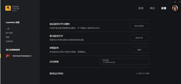 打开R星平台安装好《荒野大镖客2》后,如下图点击右上方的[设置]选项。然后在[我已安装的游戏]中选择《荒野大镖客2》并找到[启动参数]选项输入-scofflineonly。最后,进入游戏点开[Social Club]就可以查看是否在离线模式里了。