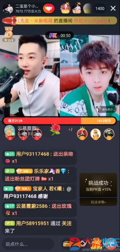 在当晚的直播中,二宝同自己的好兄弟奋斗的小九龙连麦PK,在Pk之前,两人就已商量好了惩罚方式,输了的人要在他们的群里面发红包。几轮互动之后,二宝取得了Pk胜利,小九龙也将面临发红包的惩罚,而二宝蓄势待发,早已做好抢红包的准备,粉丝从直播中看到,二宝使劲地点着屏幕,然后很失望的“啊”了一声,对面的小九龙则笑到不行,粉丝看不到群里面抢红包的情况,就在下面狂留言:“怎么样怎么样,二宝抢了多少?”“看这表情,估计没抢多少。”二宝从手机上移开目光,告诉粉丝说,他抢得最少,而且他们的规矩是抢得最少的还要发三个红包!
